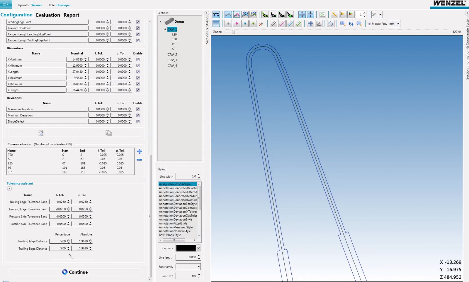 该软件还支持依据多家制造商标准(GE、Safran、Rolls Royce、Pratt & Whitney)进行评定。其功能范围既包含用于确定叶片位置的各种最佳拟合算法,也涵盖叶冠与榫头公差评定。