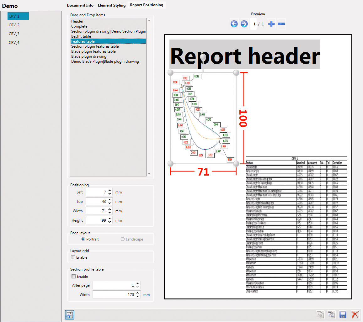 报告可自由配置,支持显示任意叶片、榫根或叶冠截面 | 模板可重复使用