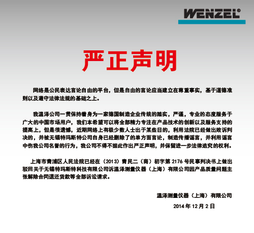 温泽公司严正声明