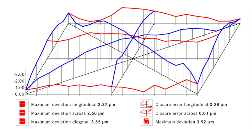 最大对角线偏差3.55微米 最大偏差3.92微米