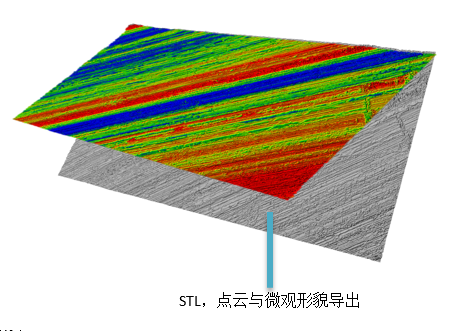 WM | RS-C能够测量和导出微观形貌、点云和三角形的STL 网格,单次测量超过400万个三角形。测量数据可以在少于30秒的测量时间内提供。最后,基于这些测量数据,并根据DIN EN ISO标准进行二维和三维粗糙度分析,并导出粗糙度参数报告。