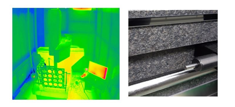 左:生产测量解决方案要在恒温恒湿箱和振动检测站中进行大量的测试,直到准备好可用于车间检测为止。
