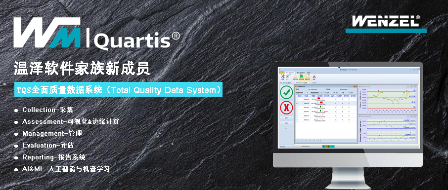 近期,温泽针对市场新的需求,通过数字化的手段赋能客户,推出了WM | Quartis家族的新成员:TQS全面质量数据系统(Total Quality Data System 简称TQS)。与时俱进的“CAMERA”的概念为国内制造业提供了专业的从数据采集(C)、可视化& 边缘计算(A)、集中管理(M)、专业分析(E)、定期评估(R)及对接先进的机器学习与人工智能平台(A)面向未来解决方案理论基础。它广泛地覆盖了线内-线边及离线(In-line & At-line & Off-line)的各类测量、测试及装配(MTA)设备生成的海量数据的收集、管理与分析的成熟解决方案以及对接前沿的人工智能与机器学习平台。
