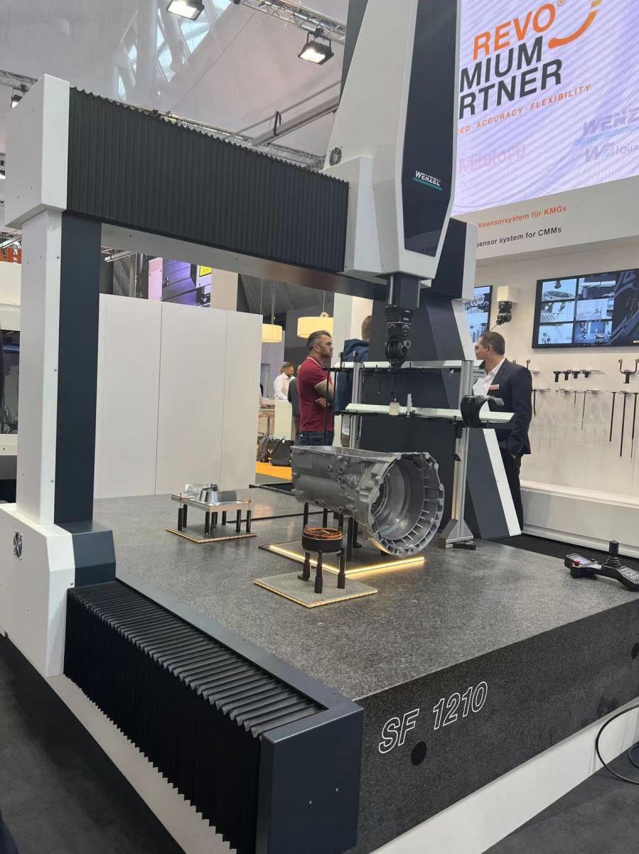 此次展会中,在雷尼绍的展位上也展示了配备 REVO 的温泽 SF 1210 车间测量解决方案, 该套解决方案可利用灵活的 5 轴测头及光学测头帮用户大大提升检测效率。此外,VDMA等合作伙伴也展示了温泽多款检测设备及系统。