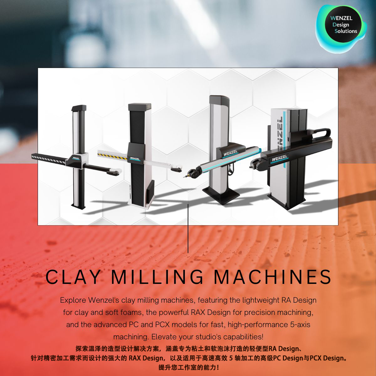 ◆ RAX | Design:功能强大的 3+2 轴机器,可实现更高的金属去除率和出色的尺寸精度,是粘土和聚氨酯砌块(高达700 kg/m³)的理想选择。